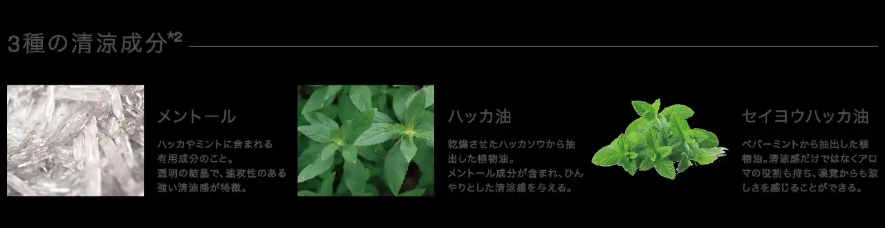 3種の清涼成分*²配合で、涼しさを感じられる冷感処方を実現。 |
