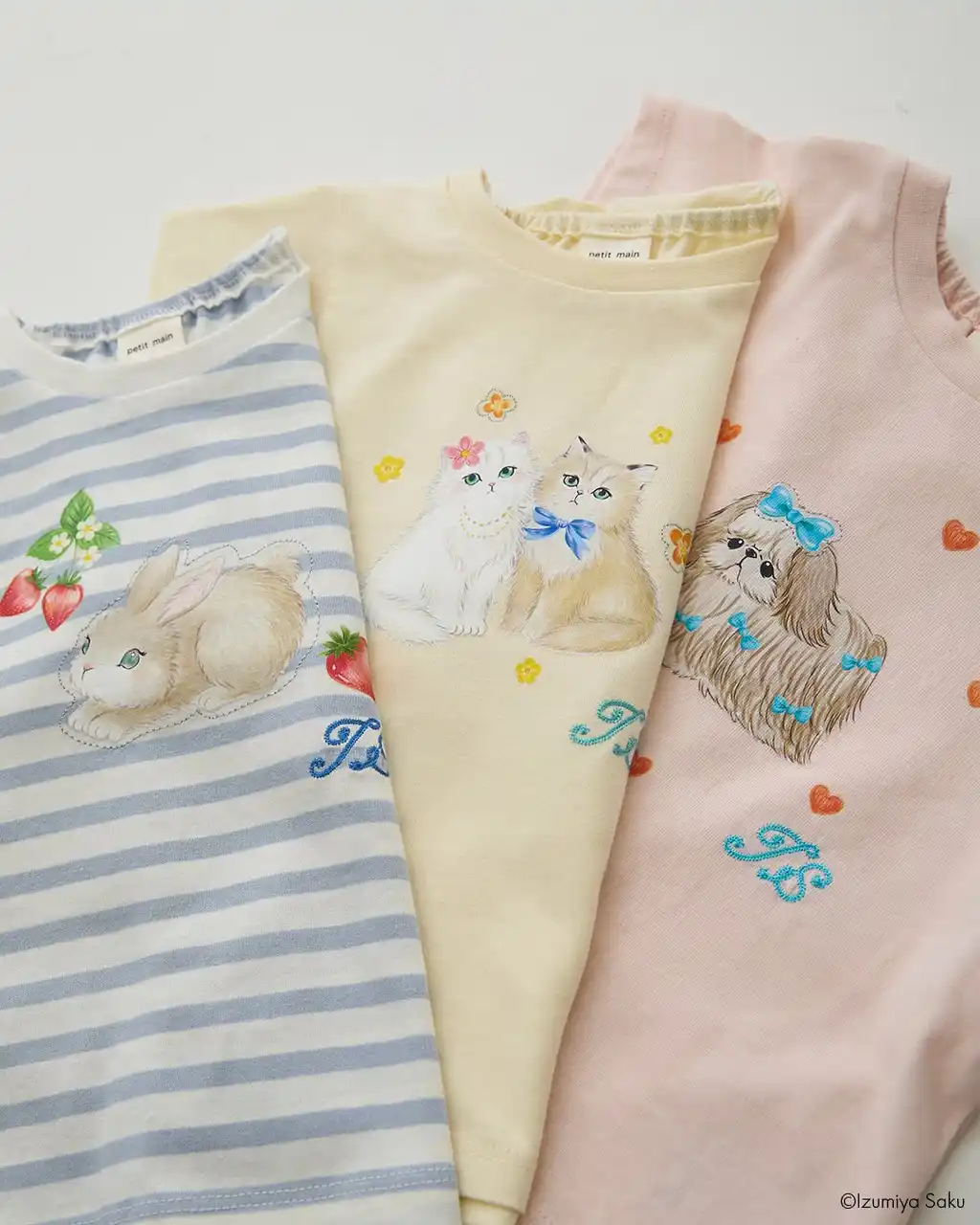 | 人気イラストレーター・泉屋サクさんが描く、愛らしくてやさしいイラストの世界観と、petit mainが大切にする“子どもらしい可愛さ”が融合したコラボレーションが今回実現しました。 | ||||||||||||