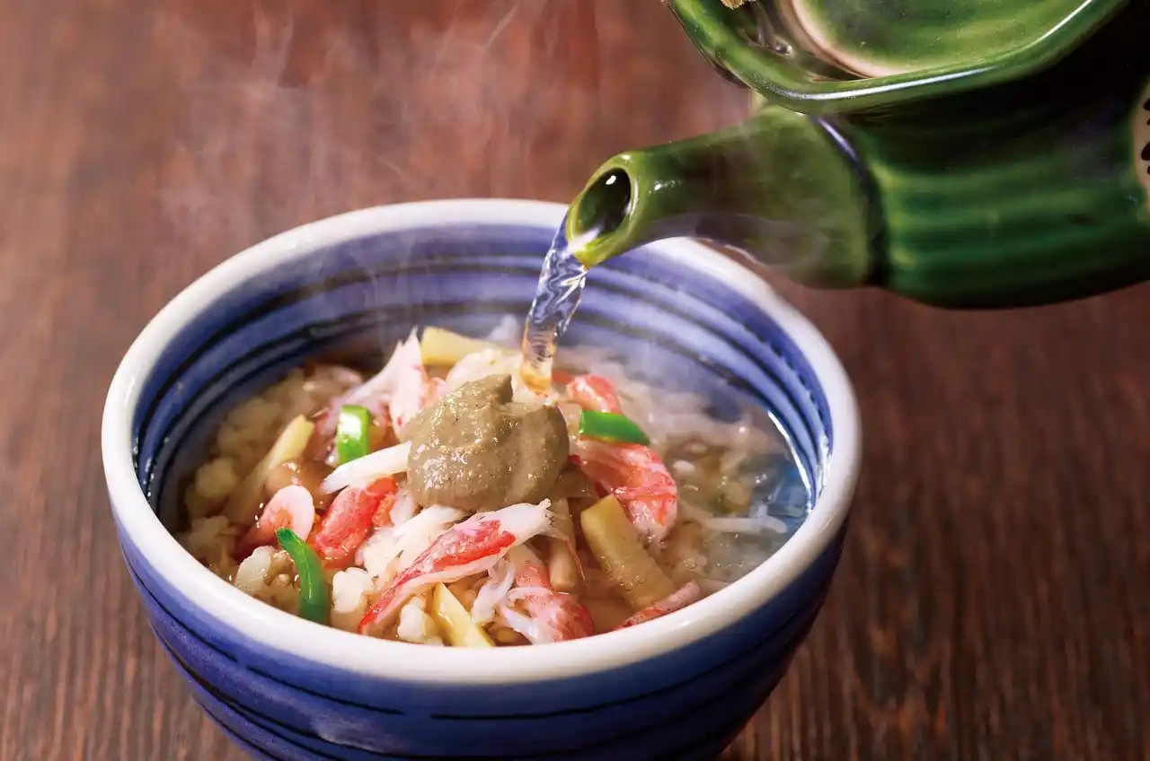 ※蟹味噌ソースをあわせた出汁茶漬けイメージ |
