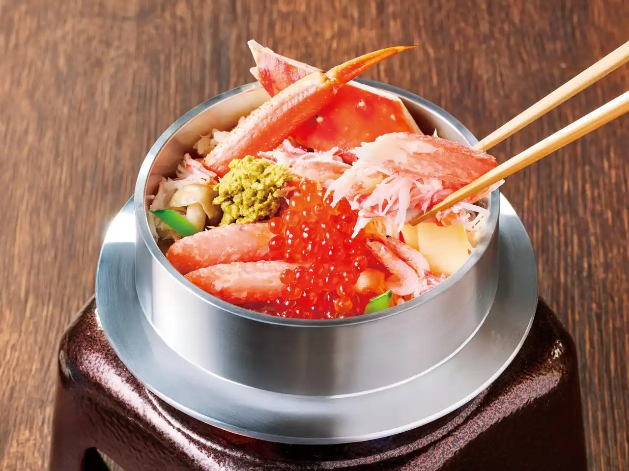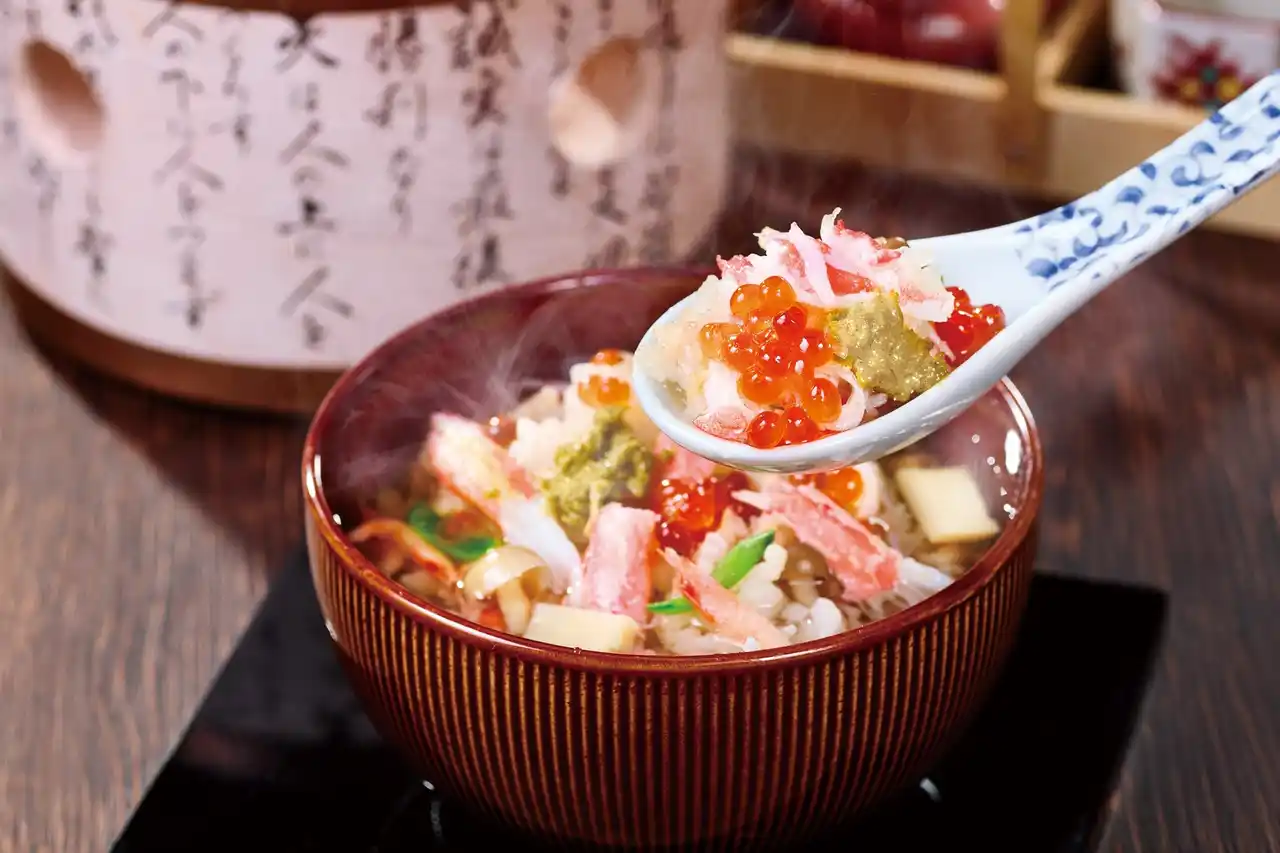 かに半身といくらを織り交ぜた豊かな味わいが楽しめる極上かに釜めし御膳 |