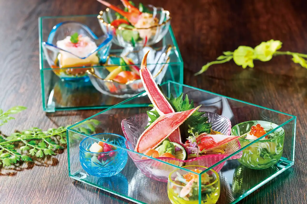 かに釜めしに加えて、見た目も華やかなクリスタル重が至福の時間を演出 |