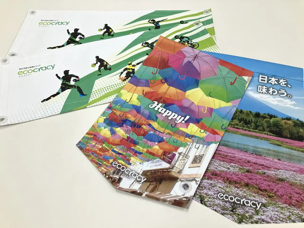 TOPPANホールディングスのグループ会社であるTOPPAN株式会社(本社:東京都文京区、代表取締役社長:野口 晴彦、以下 TOPPAN)は、単一のプラスチック素材のみを使用することで再資源化できる装飾幕「ecocracy(R)(読み:エコクラシー)」を軽量化し、環境負荷低減を強化して2026年4月より提供開始します。 |