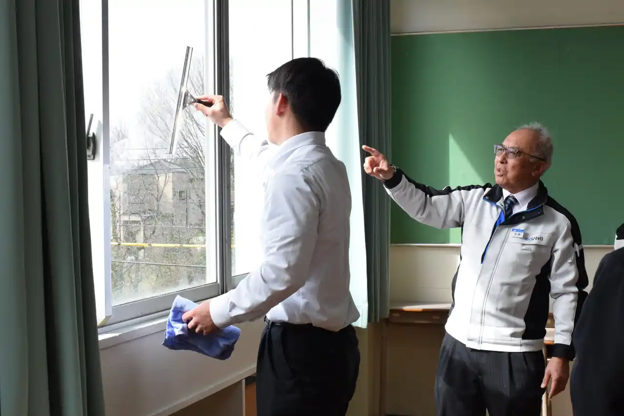▲窓の清掃体験(サービス) |