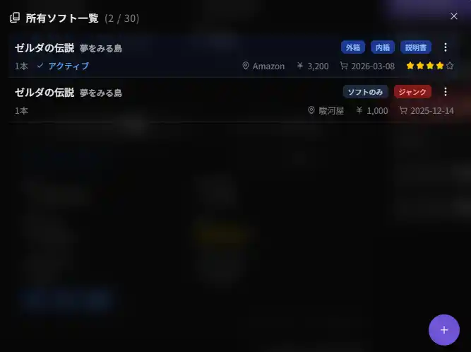 ライブラリのゲーム毎に「所有ソフト」を追加して、状態の異なる同一タイトルをそれぞれ異なる所有物として管理できるようにしました。 |