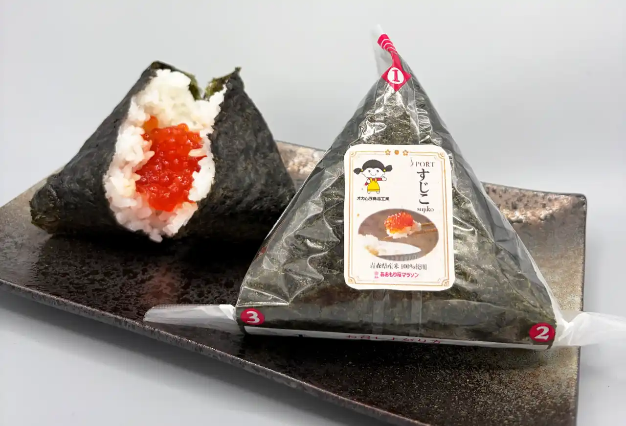 サーモンを中心とした養殖から加工・卸売までの垂直統合型ビジネスを展開する株式会社オカムラ食品工業(青森県青森市、代表取締役社長兼CEO:岡村恒一)は、2026年4月19日(日)に青森市で開催される「2026あおもり桜マラソン」に協賛いたします。 完走者へは、当社直営店「PORT(ポート)」で販売する筋子「活き造り一夜漬け」を使用した「すじこおにぎり」を今年も提供します。前回大会では「粒がぷちぷちしてて、おいしい」などの声が寄せられ、ランナーから好評をいただいた本商品を、今年はパッケージシールのデザインを新たにしてお届けします。 |