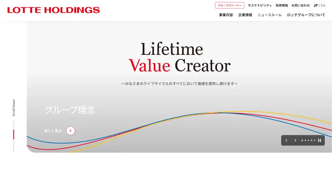 新コーポレートサイトは、ロッテホールディングスが展開する新規事業および日本のロッテグループの全体像をステークホルダーの皆さまに発信するプラットフォームとして刷新いたしました。 |