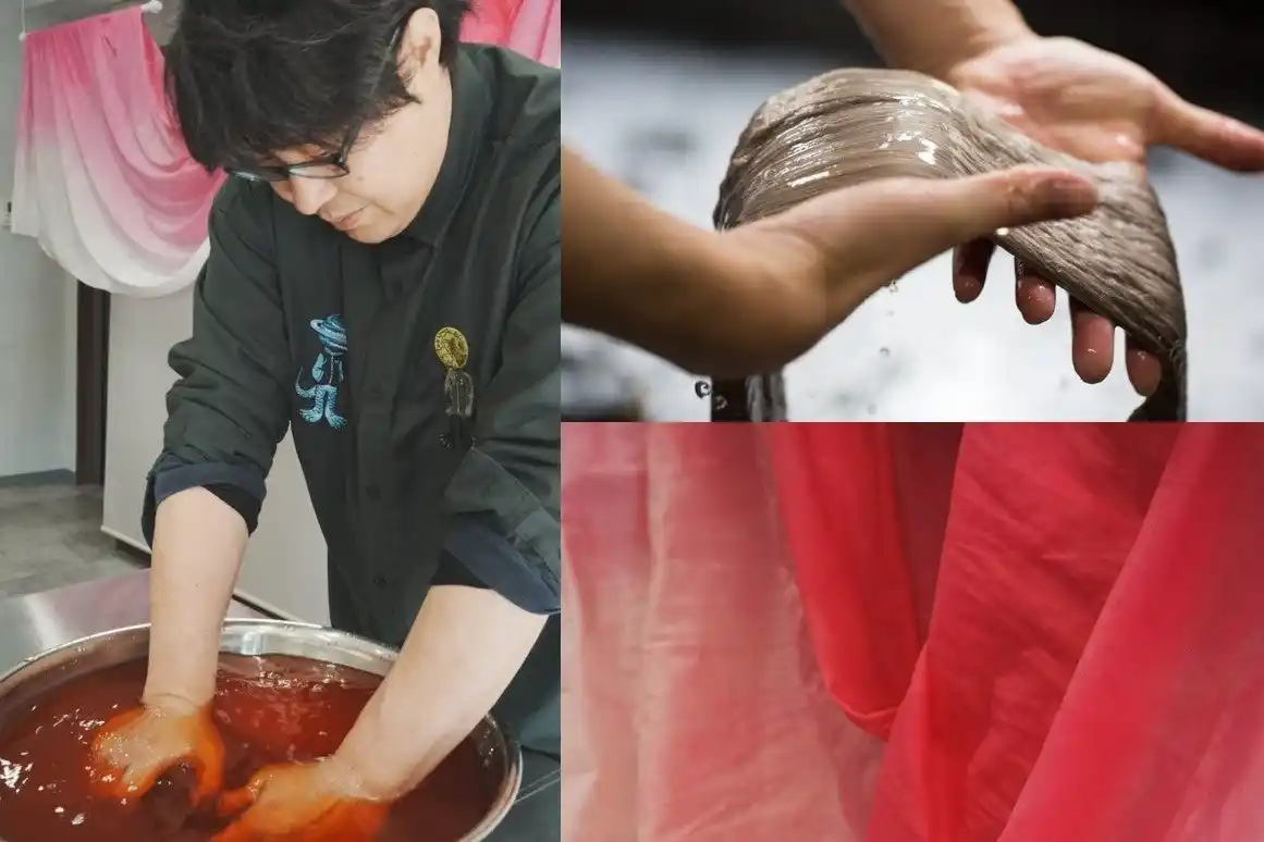 | ・内容:日本の伝統染料である紅花で和紙を染め上げる特別な体験。淡い紅色に染まった和紙に自由に筆を走らせ、世界に一つだけの作品を創り出します。傍らでは紅花染の4mの大布を舞台に、蒼遊氏が文豪の春の言葉を大筆で書き上げる圧巻のパフォーマンスを披露。色がゆっくりと和紙に移ろう臨場感とともに、草木染めが人々の祈りと共に受け継がれてきた物語を、五感を通じて深く紐解きます。 | |||||||||||||||