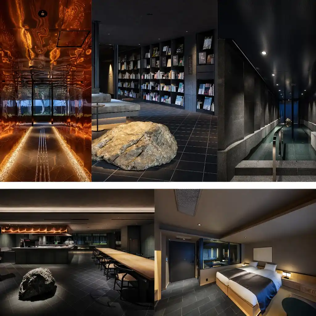 【hotel facilities】 大浴場:B1階 『grand bath uro (グランドバス ウロ)』 / 東側34平方メートル 、西側52平方メートル レストランバー:1階 『cafe & bar oku (カフェ&バー オク)』 / 140平方メートル ライブラリー:1階 『Library(ライブラリー)』 日本庭園:1階 『窟(クツ)』 |