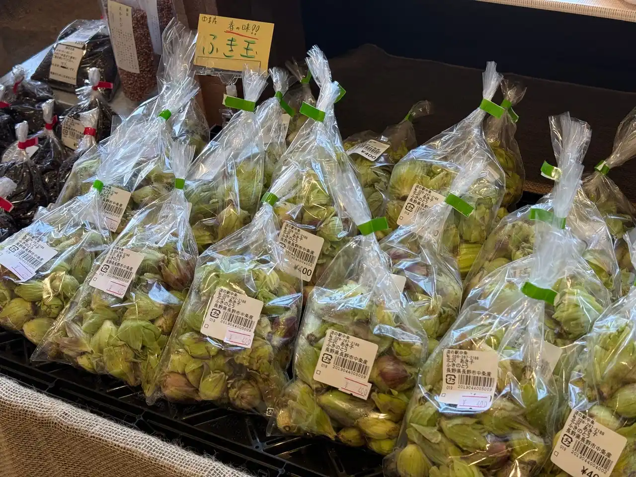 1階直売所では、旬のふきのとうや長野県内産の長芋、ほうれん草などの地元野菜を特売いたします。春の味覚をお得に楽しめる、二日間限定のおすすめコーナーです。 |