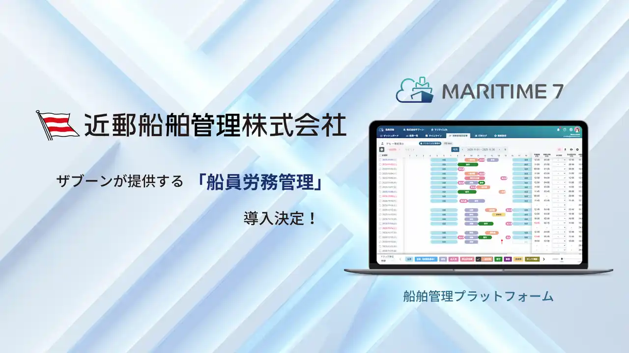 【株式会社ザブーン】 近郵船舶管理、船舶管理プラットフォーム「MARITIME 7」船員労務管理を導入