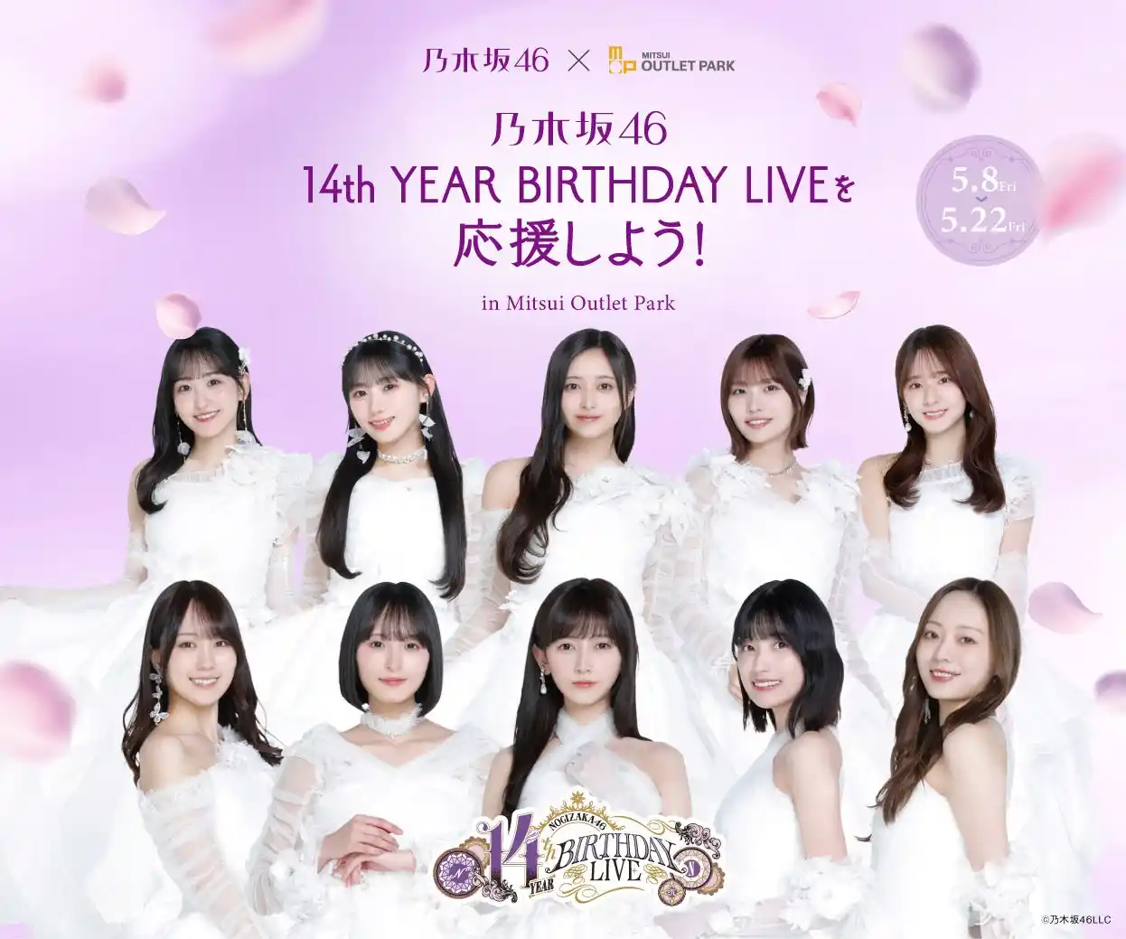 三井不動産商業マネジメント株式会社(東京都中央区)が運営する三井アウトレットパークでは、アイドルグループ・乃木坂46の「乃木坂46 14th YEAR BIRTHDAY LIVE」開催を記念したコラボレーション企画を、2026年5月8日(金)~5月22日(金)の期間に三井アウトレットパーク全14施設で開催いたします。 |