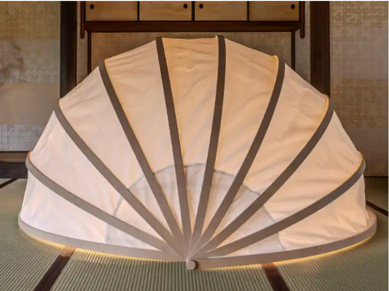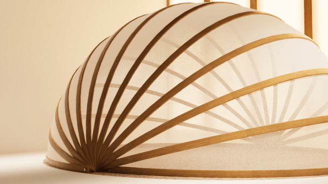 構造の着想: 日本の伝統的な「扇子」の構造原理を取り入れ、一点を軸に複数のリブ(骨組み)が開閉する仕組みを採用しています。 |