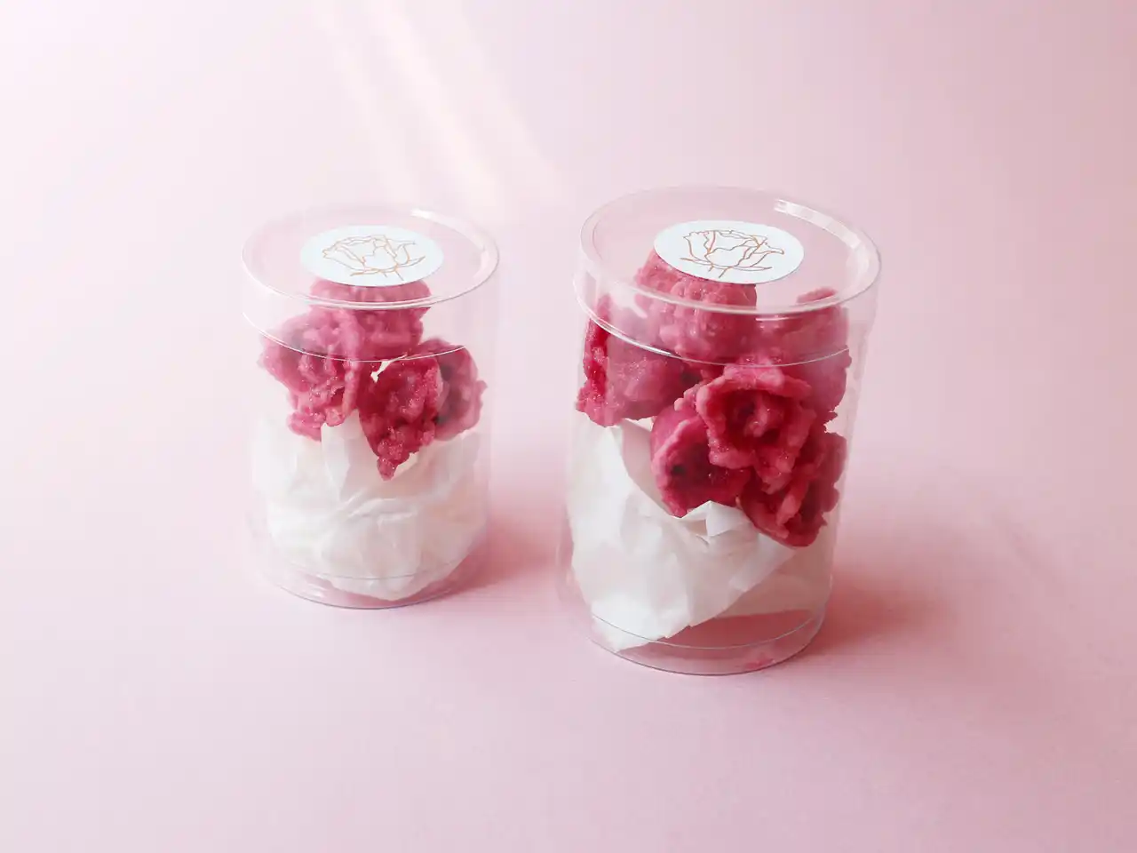 欧州で200年以上受け継がれてきた伝統製法と丁寧な手仕事で、直径約2cmの国産ミニ薔薇を一輪ずつ砂糖の結晶で包み、約60日かけて仕上げた宝石のような砂糖菓子です。ひと口含めば、薔薇の優雅で上品な香りがふわりと広がります。 |
