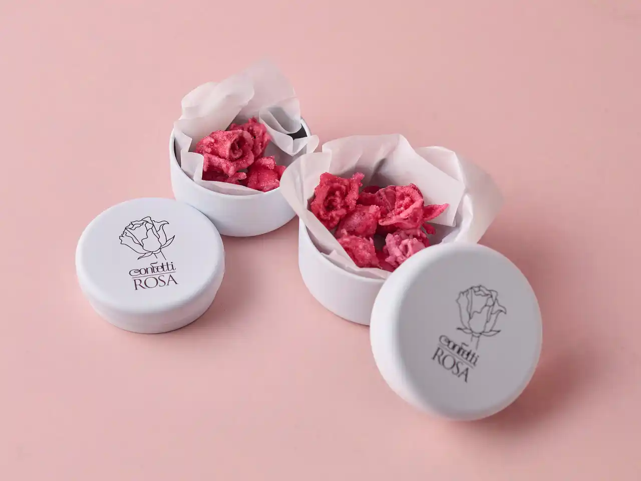 Confetti ROSAの薔薇の砂糖菓子は、欧州で200年以上受け継がれている伝統製法のもと、約60日をかけて一輪のミニ薔薇を砂糖の結晶で包みます。 |