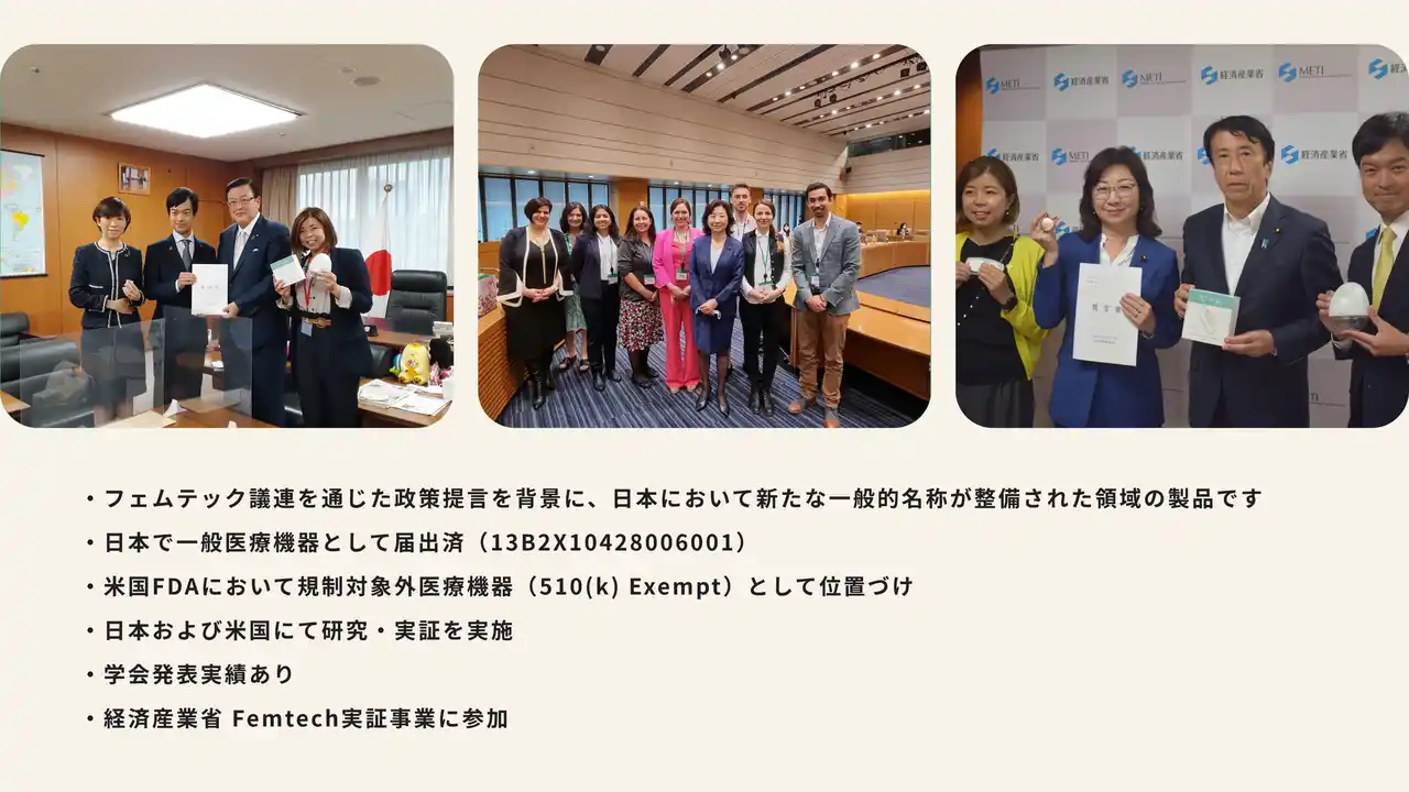 制度や薬事、資金調達といった課題と向き合いながら、女性の健康領域におけるテクノロジーを社会に実装していくことは、決して容易ではありませんでした。それでも今回、この製品を日本に届けられることを大変嬉しく思っています。本取り組みは、一つの重要なマイルストーンであると考えています。 |