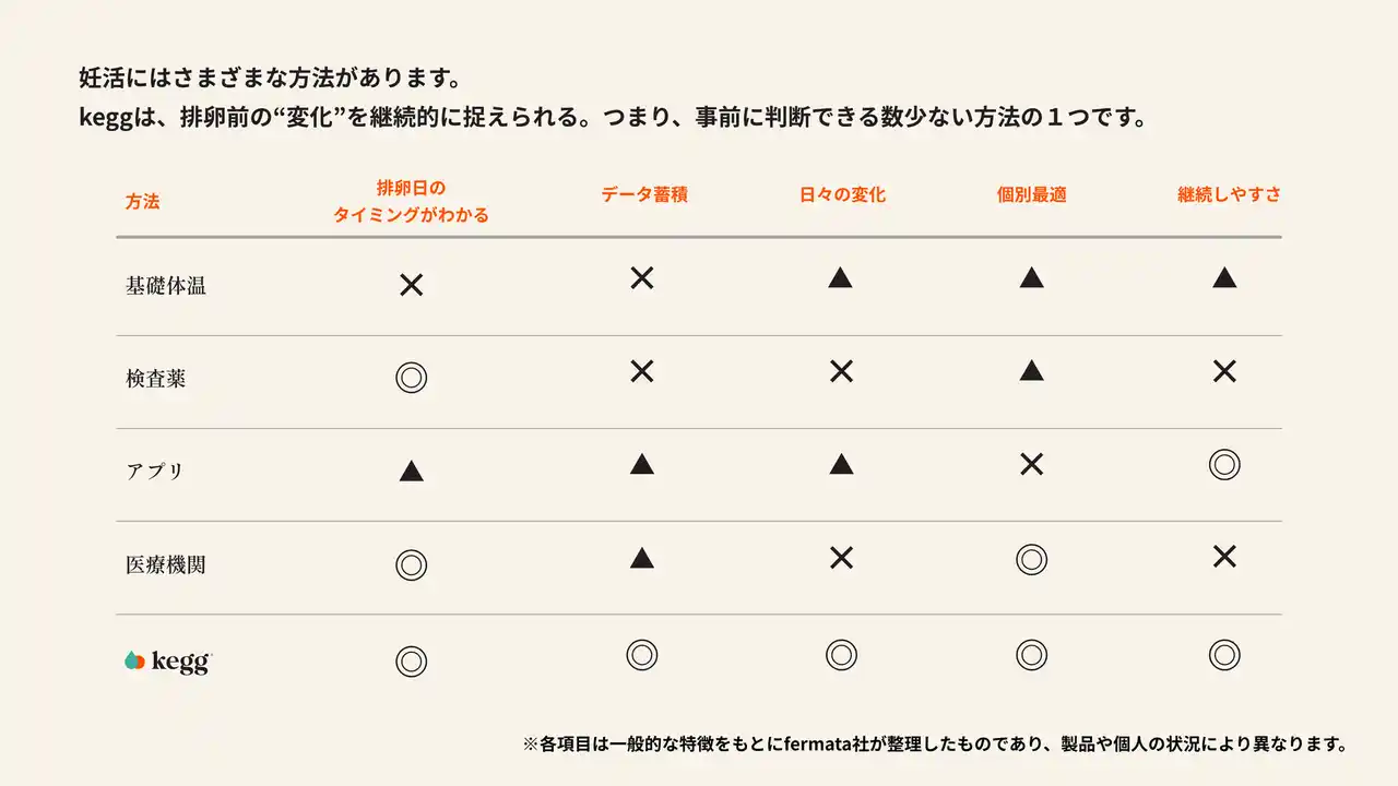 keggは、その間にある第三の選択肢として、日々のデータをもとに自分のからだを理解し、より正確なタイミングを把握するための新たなアプローチを提示します。 |