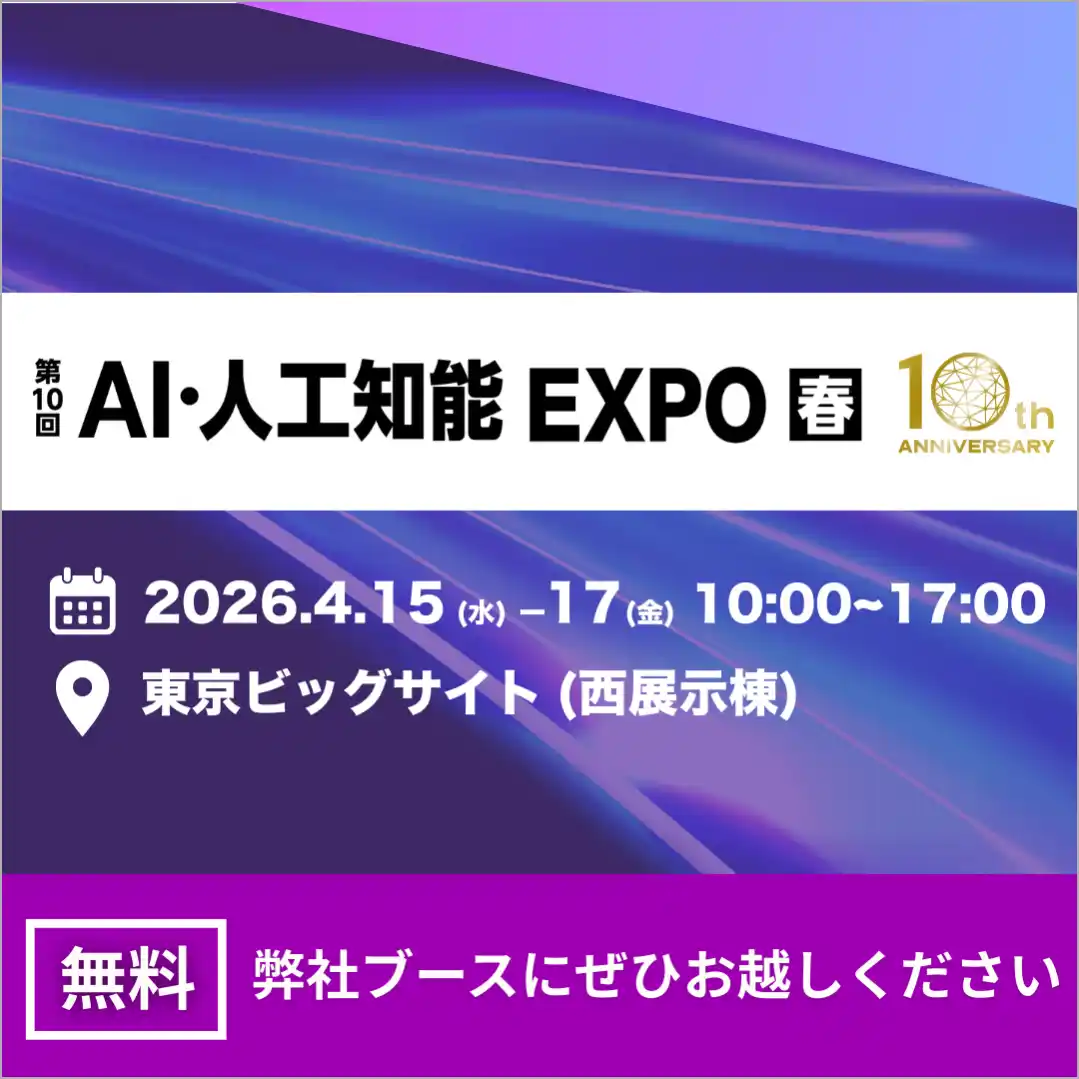 2026年4月15日(水)~17日(金)に東京ビッグサイトで開催される「NexTech Week 2026春」内の「第10回AI・人工知能EXPO春」。本イベントは日本最大のAI専門商談展で、今年で10周年を迎えます。 |
