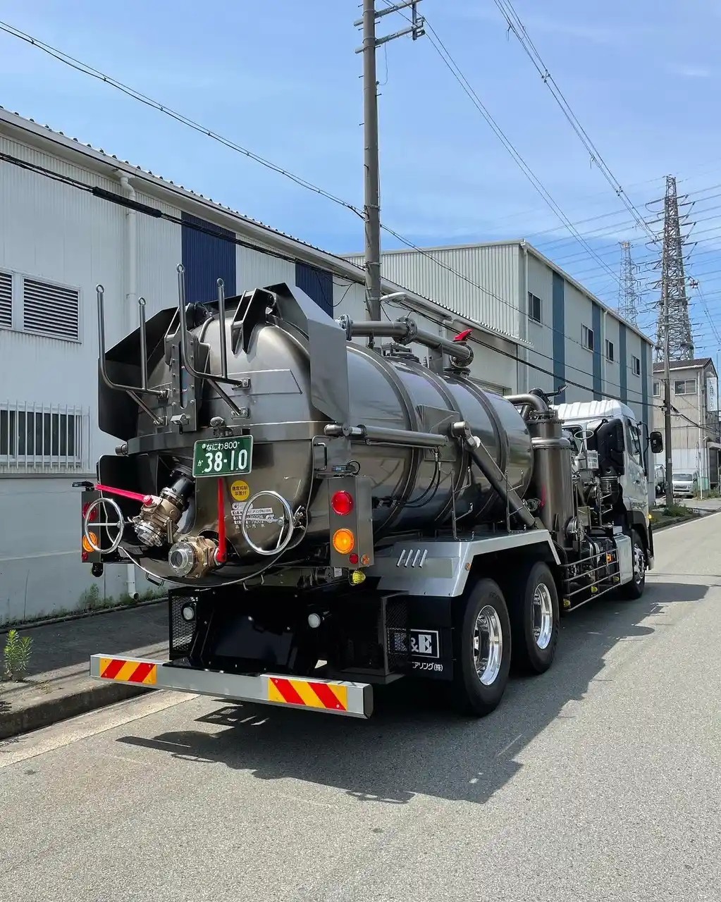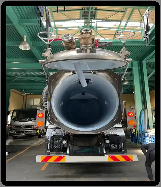 当社はこの課題を解決すべく、接液部や主要構造に特殊な耐酸加工を施した**「耐酸ブロアー車」**を導入。全国的にも数少ないこの車両を自社運用することで、他社では断られるような高難度の現場にも対応できる体制を整えています。 |