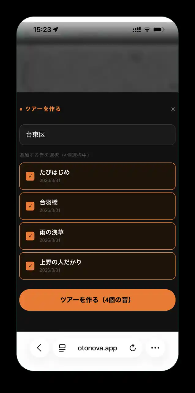 株式会社ホリデイ(本社:東京都台頭区、代表:松岡 巧)は、場所に音声を紐づけて記録・シェアできる音声マップアプリ「otonova(TM)」のベータ版を2026年4月8日より公開しました。 スマートフォンのブラウザからアクセスするだけで、その場で録音した7秒の音声を現在地に保存できます。旅の思い出や街の風景を音で残し、ツアーとしてまとめてシェアする新しい体験を提供します。 アプリのインストールは不要で、Googleアカウントでログインするだけですぐに使用できます。 【公式サイト】https://holi-day.co.jp/otonova |