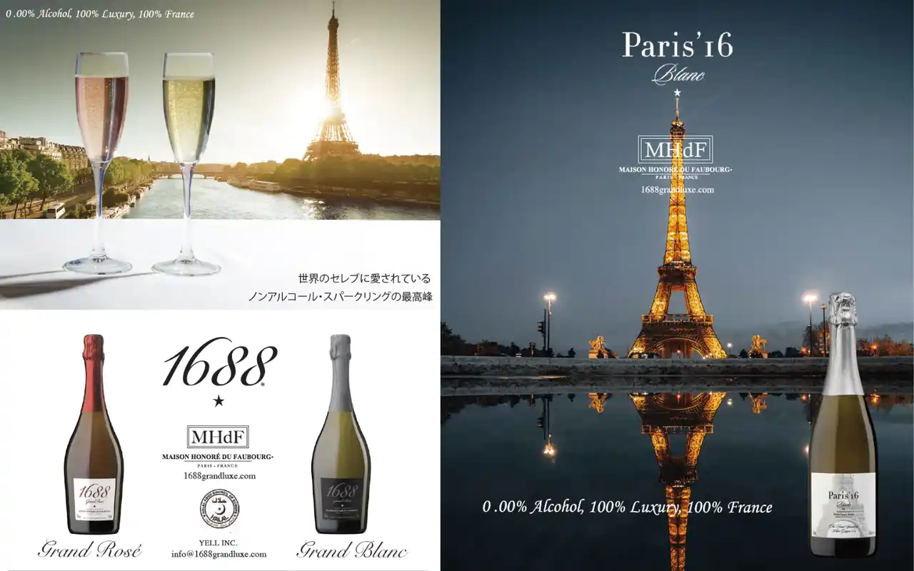 フランス産・元祖高級ノンアルコールスパークリング「1688」と、姉妹ブランドの「Paris'16」 |