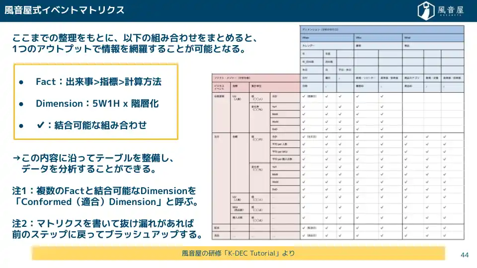 イベントマトリクス(FactとDimensionの組み合わせを整理するシート) |