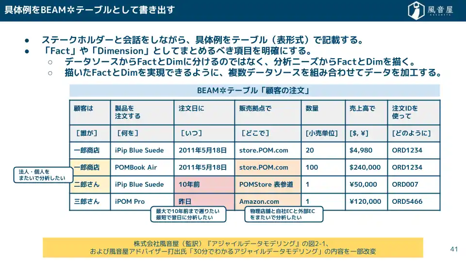 BEAM✲テーブル(ビジネスイベントを分析要件に落とし込む表) |