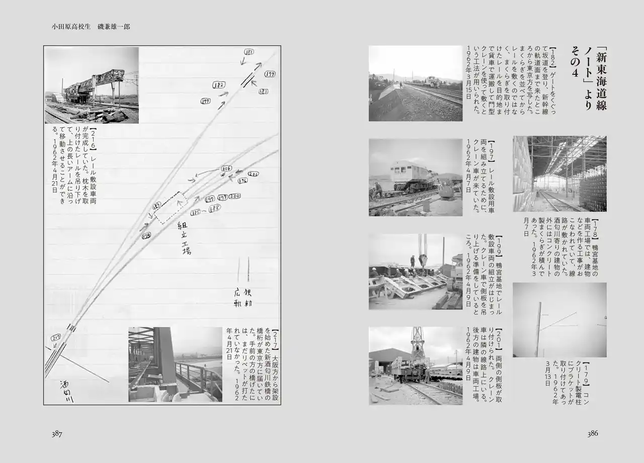 証言のみならず、当時の鴨宮モデル線建設の模様を詳細に記録した磯兼雄一郎氏の写真および地図も掲載します。 |