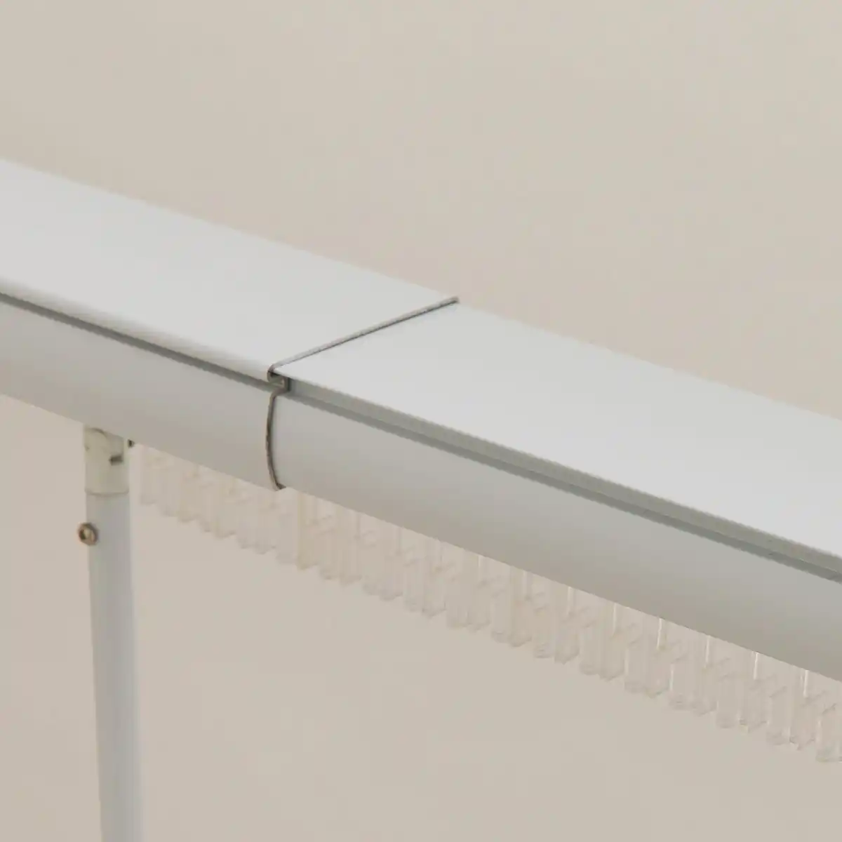 レール部分が伸縮可能な設計のため、設置する窓のサイズに合わせて柔軟に対応できます。取り付けは正面付け・天井付けに対応しています。 |