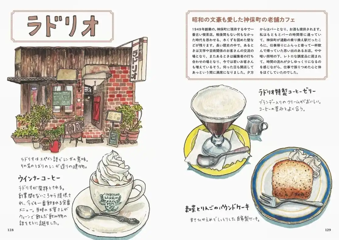 個性的な東京カフェ32軒を、写真よりもおいしそうなイラストで緻密に描き上げるイラストレーター・れいんさんがナビゲート。ページをめくるごとに、おいしそうなカフェメニューにごくりと喉がなり「ここ、行ってみたい!」という衝動に駆られるに違いありません。 |
