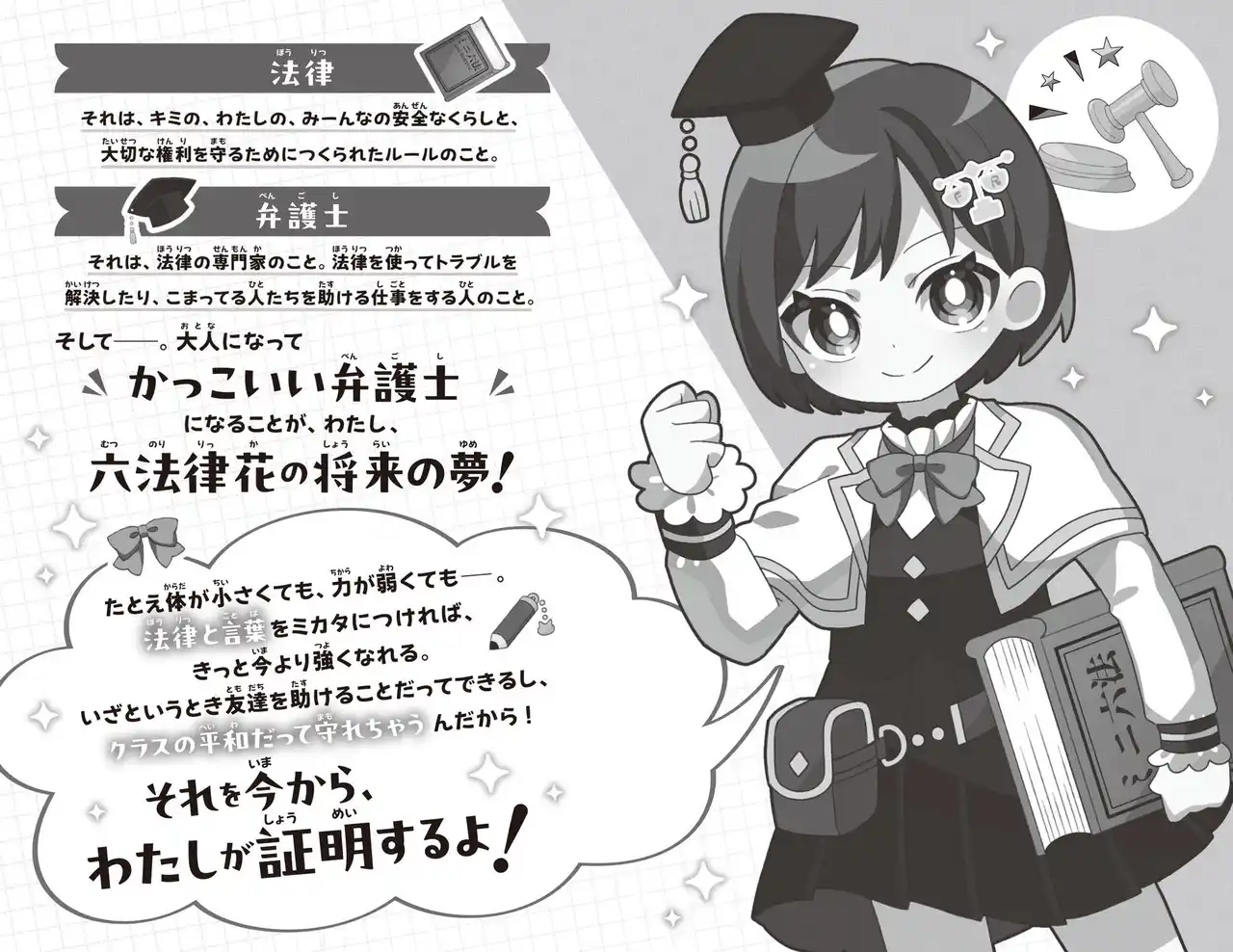 わたし、六法律花(むつのり・りっか)の夢はカッコイイ弁護士になることっ! |