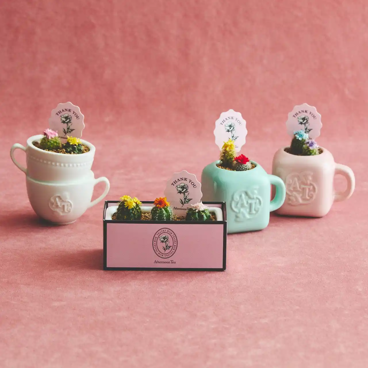 ティーカップサボテン ¥2,200、ミニマグサボテン 各¥1,430、花咲サボテンmini ¥1,980 ※公式オンラインストアでの取り扱いなし |