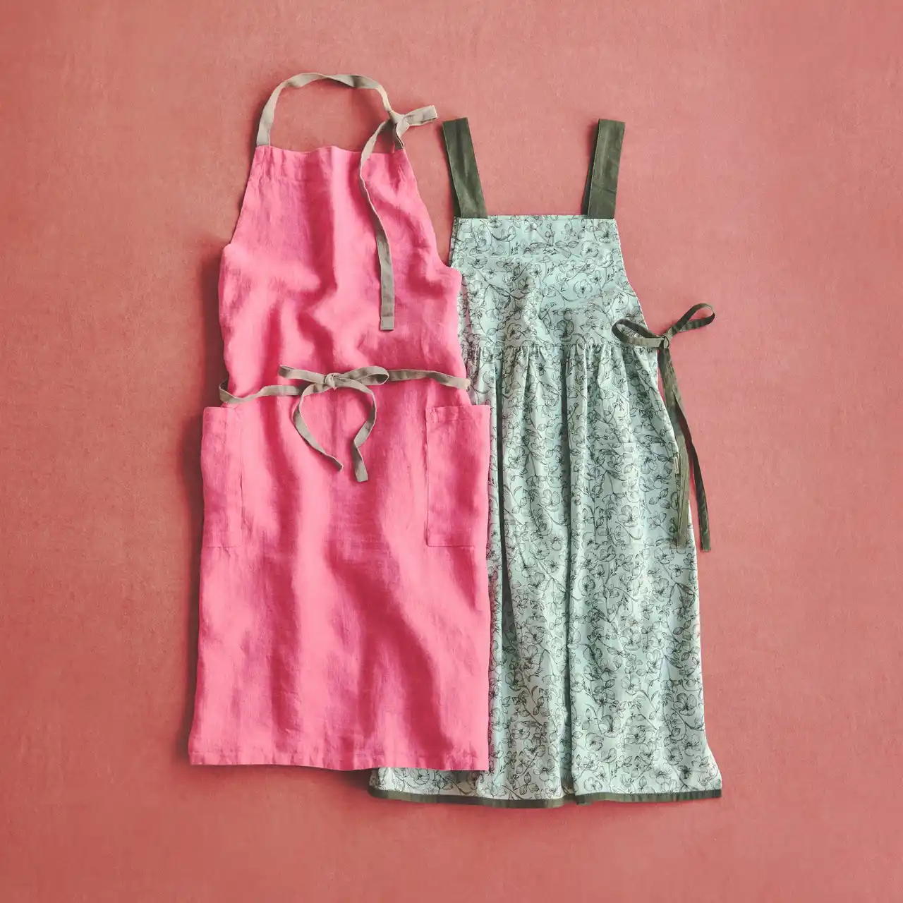 リネンエプロン ¥6,600、ポピーサイドリボンエプロン ¥4,950 |