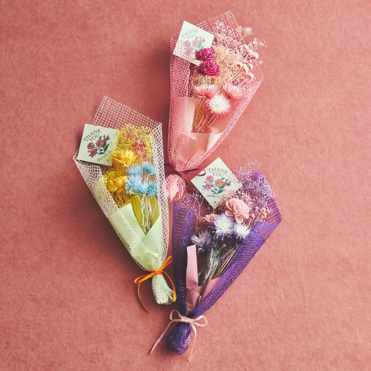 プリザーブドフラワーブーケ 各¥2,860※マルチ/パープルは一部店舗限定 |
