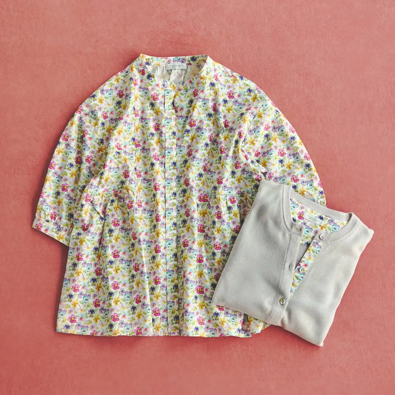 リバティプリントブラウス ¥13,970 、リバティプリントカーディガン ¥7,480 |
