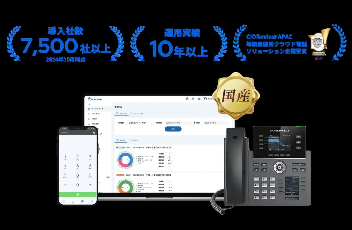 GoodLineの受賞カテゴリ- クラウドPBX:https://www.itreview.jp/categories/pbx |