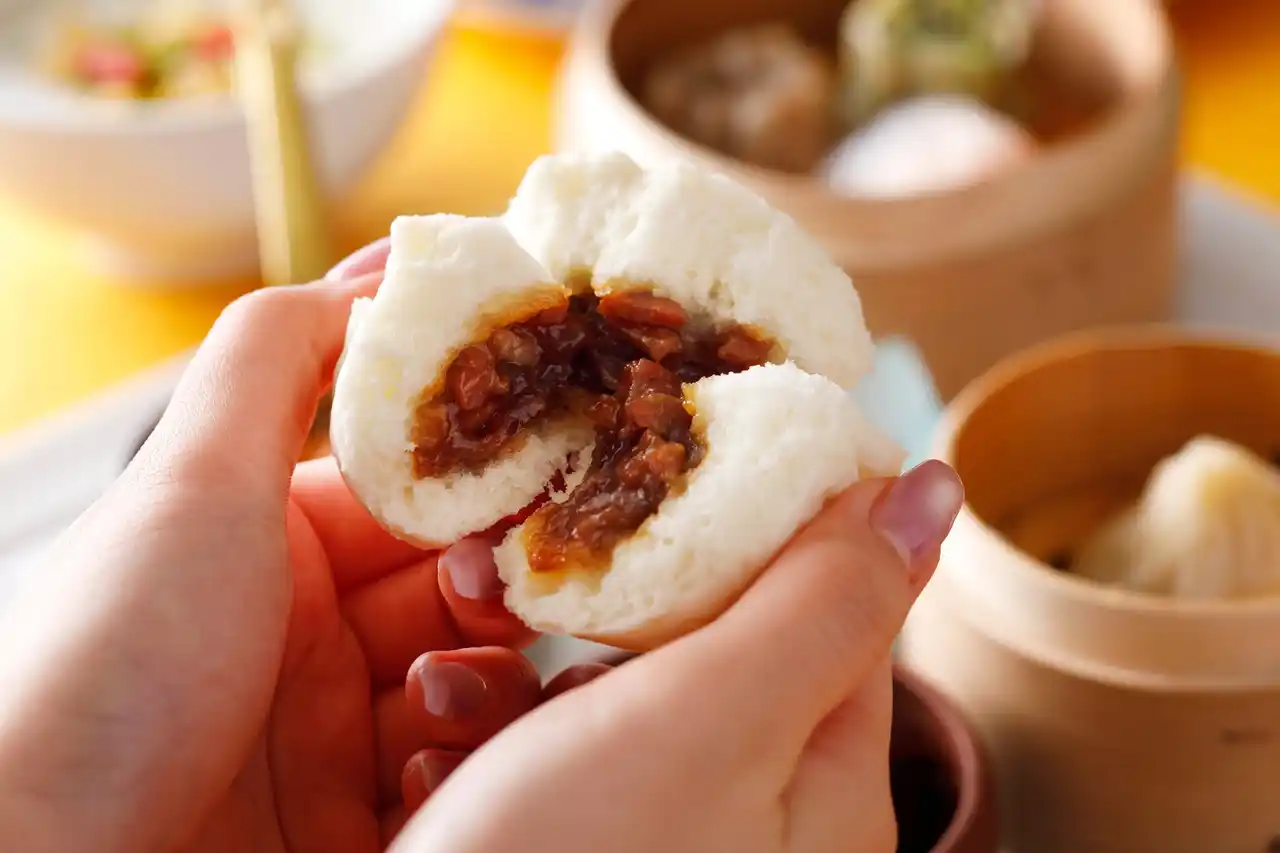 多彩に並ぶ点心も、「大観苑 アフタヌーンティー」の魅力の一つ。熟練の点心師の繊細な技術が詰まった手作りの品々は、それぞれ多彩な味わいをお愉しみいただけます。もちっとした皮とプリプリ食感の海老のコントラストが楽しい「海老蒸し餃子」や、歯ごたえと広がる旨みをお愉しみいただける「野菜焼売」、さらにコク深く濃厚な味わいがアクセントとなる「叉焼入りまんじゅう」など、多彩な点心が顔を揃えます。 |