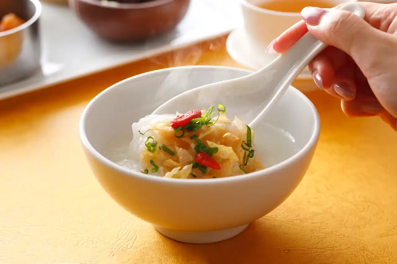 さらに、いま話題の“中華粥”にも注目を。「枸杞子と干し貝柱入りおかゆ」は、薬膳として古来より重宝されてきた枸杞子(乾燥させた「クコの実」)、干し貝柱が味わいに深みを添える一品です。クレオパトラが愛したとも言われる枸杞子を使用した「大観苑」ならではの中華粥で、罪悪感なく“アフタヌーンティー”をご堪能ください。 |