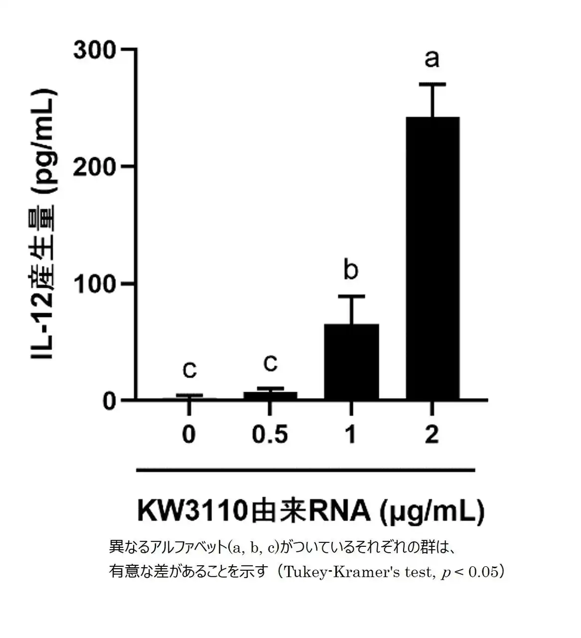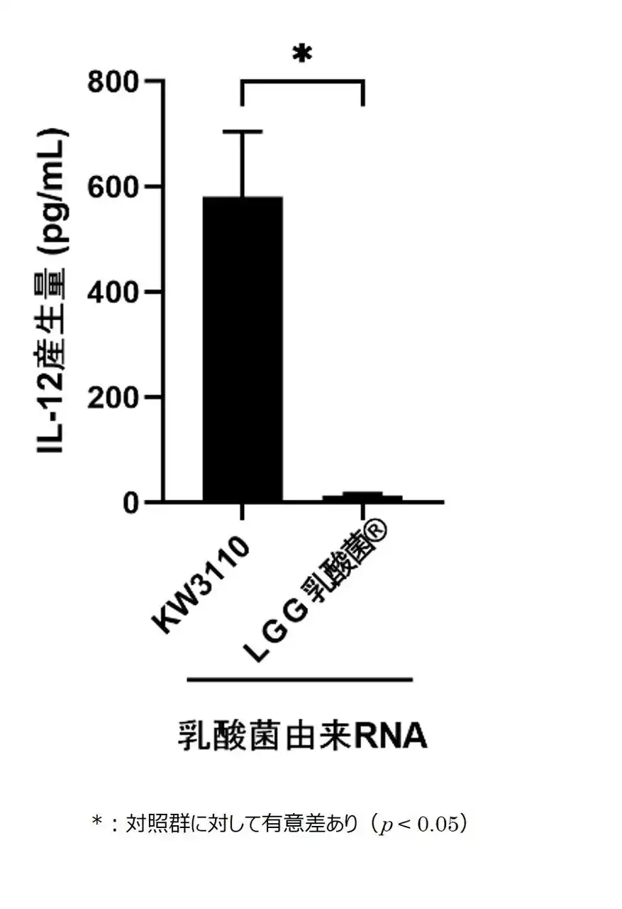 図4. 乳酸菌L. パラカゼイ KW3110由来RNAとLGG乳酸菌(R)由来RNAのIL-12産生誘導能の比較 |