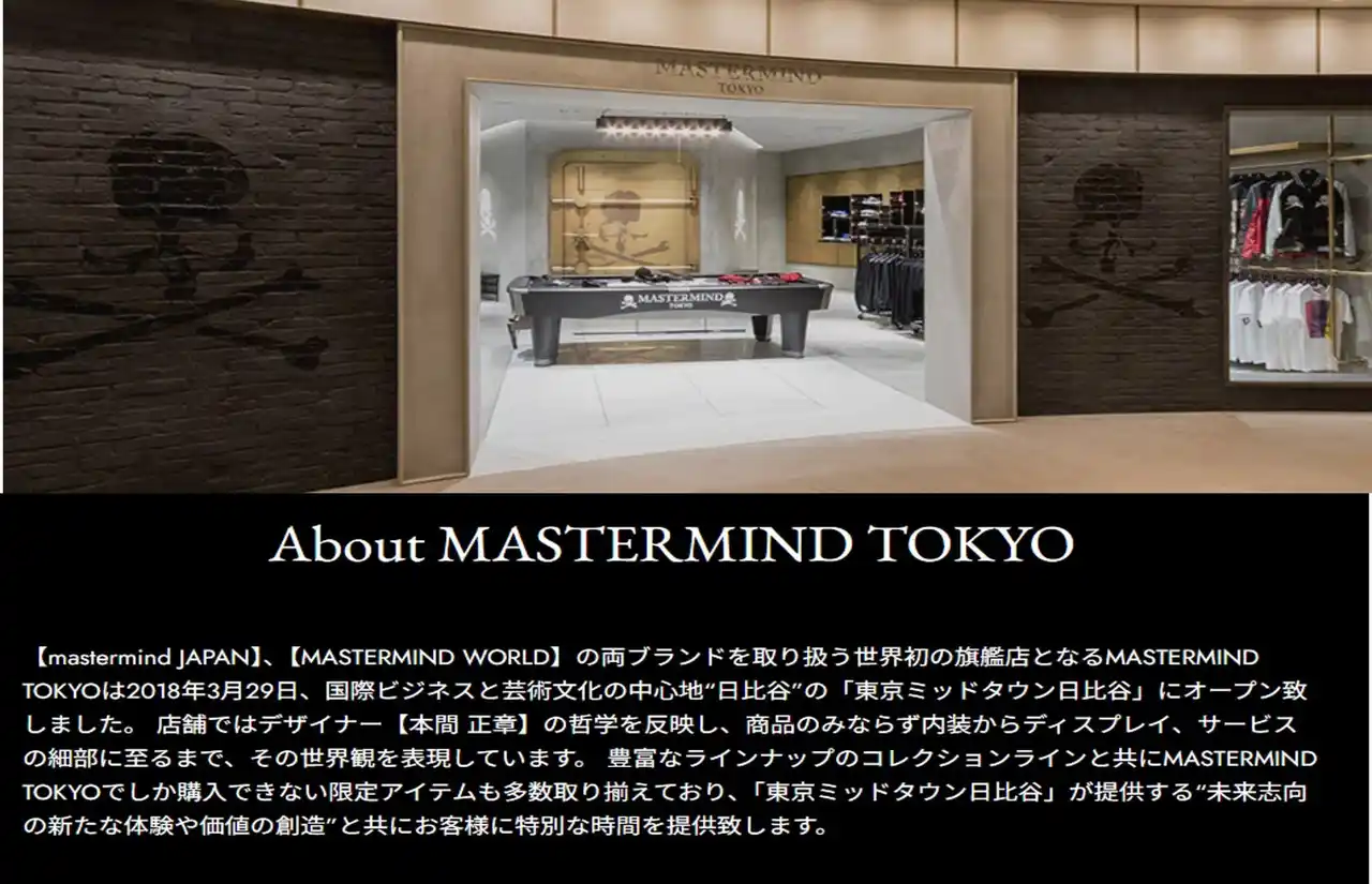 本間正章が1997年に立ち上げた「mastermind JAPAN」から派生し、2017年にグローバル展開を視野に誕生したラグジュアリーストリートブランド。アイコニックなスカルロゴと漆黒の世界観、日本製へのこだわりを軸に、ストリートとハイファッションを融合した唯一無二のスタイルを提案。“夢を諦めない”という哲学を宿すデザインで、世界中のファッショニスタを魅了し続けている。 |