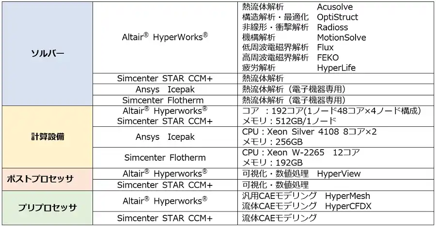 【保有ソフト・計算設備】※2025年7月現在 |