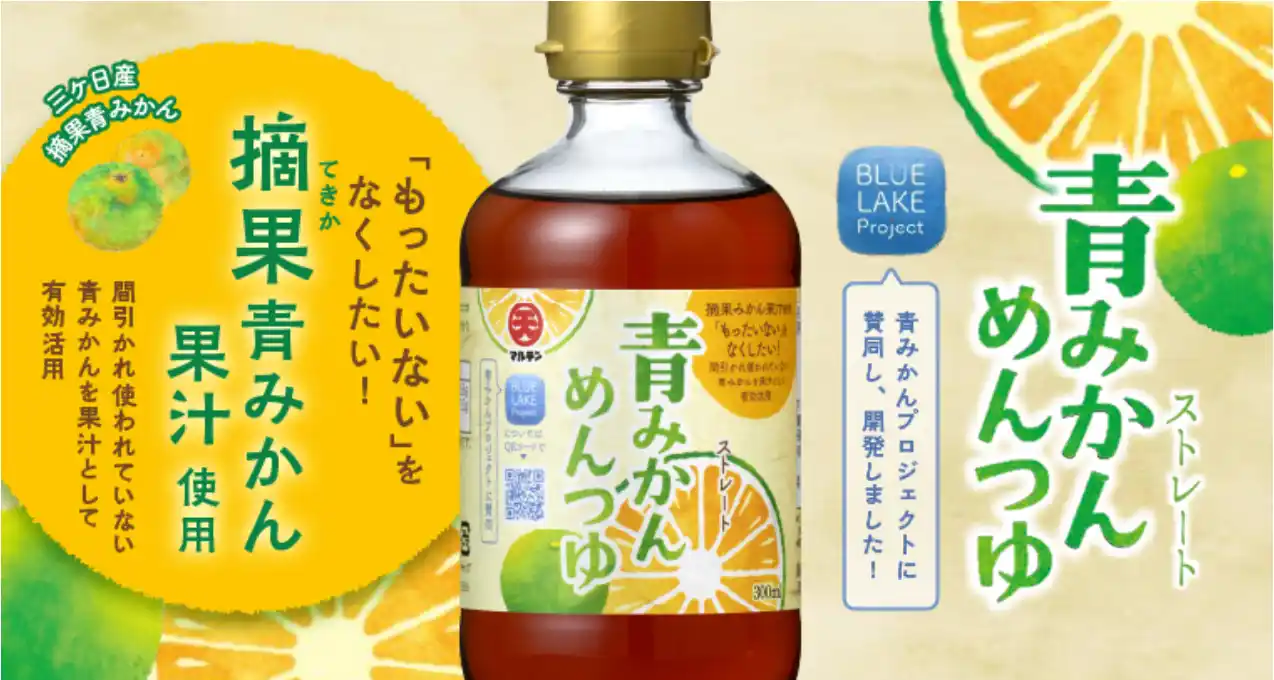 創業200年以上の歴史を誇る老舗醤油製造会社、日本丸天醤油株式会社(兵庫県たつの市、代表取締役社長 延賀 海輝)は、間引かれ使われない三ケ日産の摘果青みかんを使用する、爽やかな柑橘の風味と、鰹といりこだしの調和を楽しめる新商品 「青みかんめんつゆストレート」 を発売します。 |