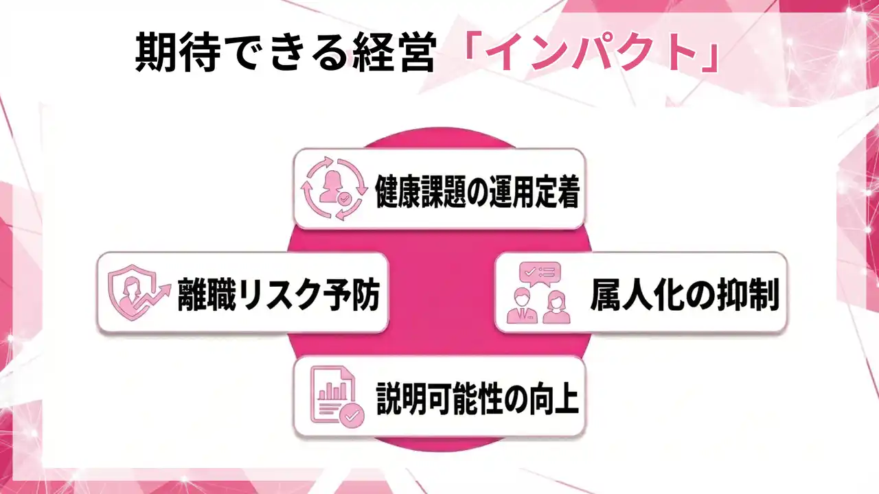 健康経営は、認定取得が目的化すると「やったことの列挙」になりやすく、職場での理解不足や相談しづらさが残ることで、欠勤・離職・プレゼンティーイズムの前段となる課題が放置されるケースがあります。 |