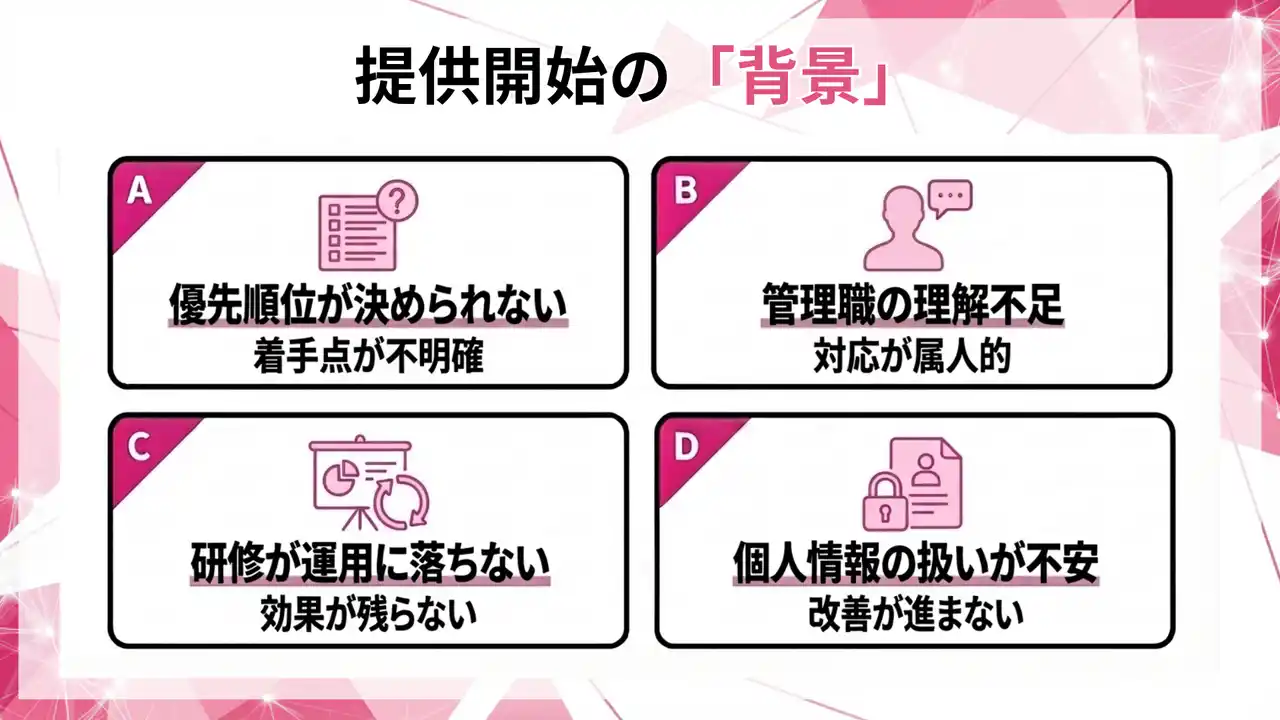 制度や配慮が「運用として回る」ための前提知識を揃える |