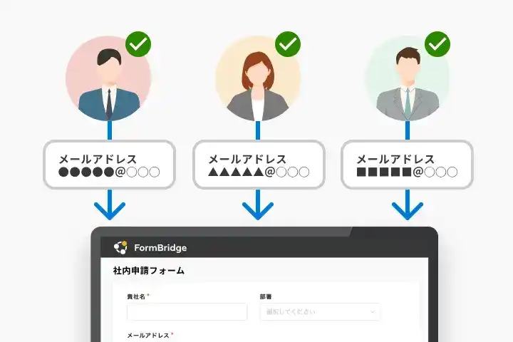 ライセンスを持つ人それぞれが、固有のアカウント(自分のメールアドレス)でログインできるようになります。Toyokumo kintoneApp認証を利用した安全性の高いログインによって、不正な利用を防止できます。 |