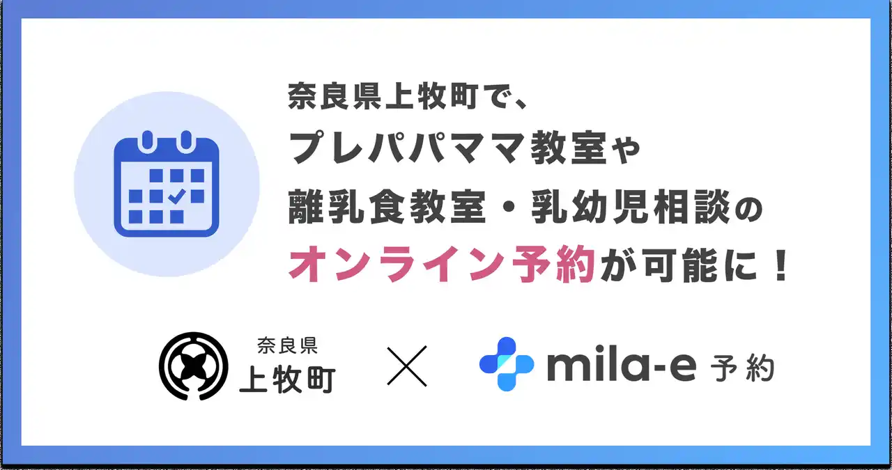 自治体向けサービスを開発する株式会社ミラボ(本社:東京都千代田区、代表取締役:谷川一也、以下「ミラボ」)は、オンライン予約サービス「mila-e(ミライー) 予約」の奈良県 上牧町への提供が決定し、2026年4月1日より運用を開始しました。