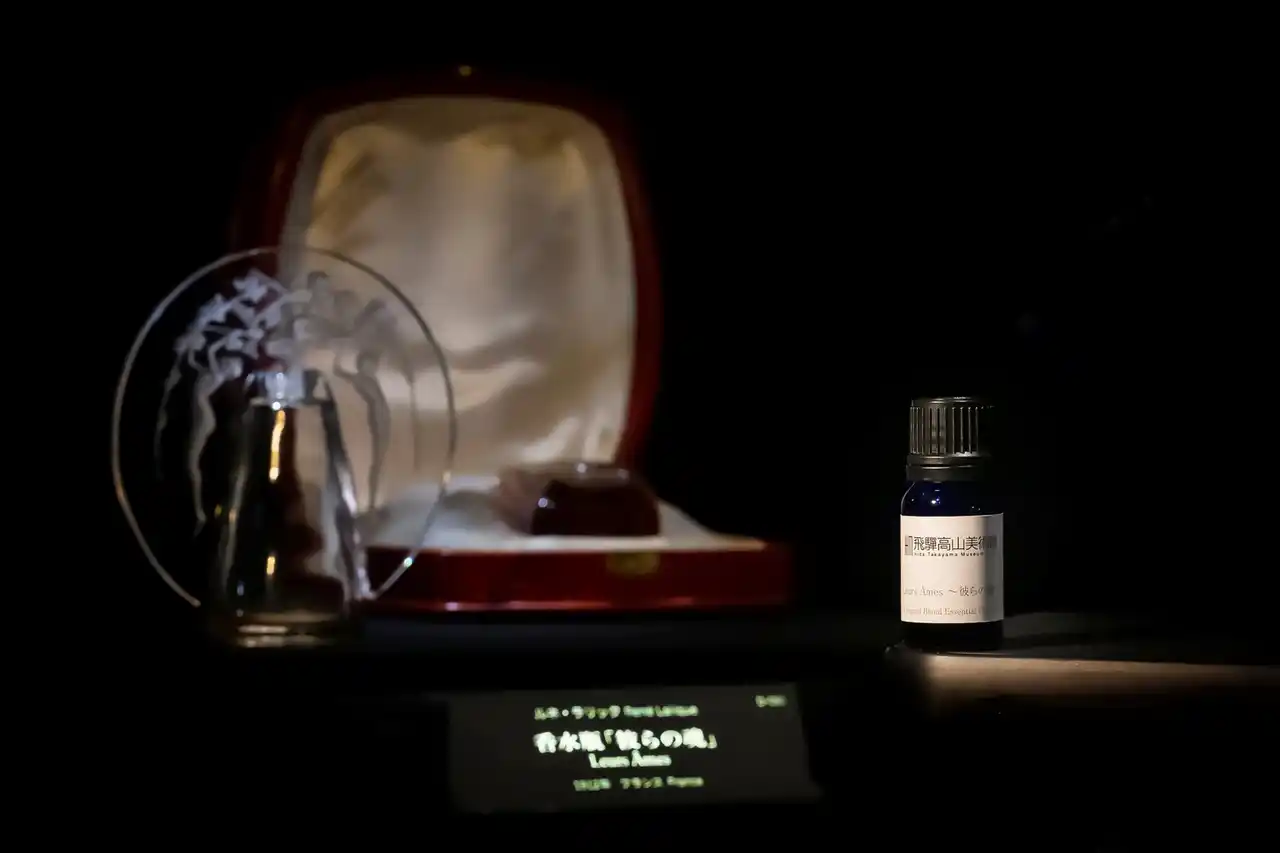 2025年に迎えたアール・デコ100周年を記念して、展示室3では「アール・デコ100周年展 ルネ・ラリック ~輝きと香り~」を2026年7月26日(日)まで開催しています。本展では、アール・デコ期を象徴する香水瓶の数々をご紹介しており、《彼らの魂》もその一つとして展示されています。作品そのものと空間の中で香りを想起し、さらにその余韻を持ち帰ることで、鑑賞体験は館内から日常へと連続していきます。美術館で過ごした時間が、帰路の先でも静かに続いていく。香りを通して広がる、もうひとつの鑑賞体験をお楽しみください。 |