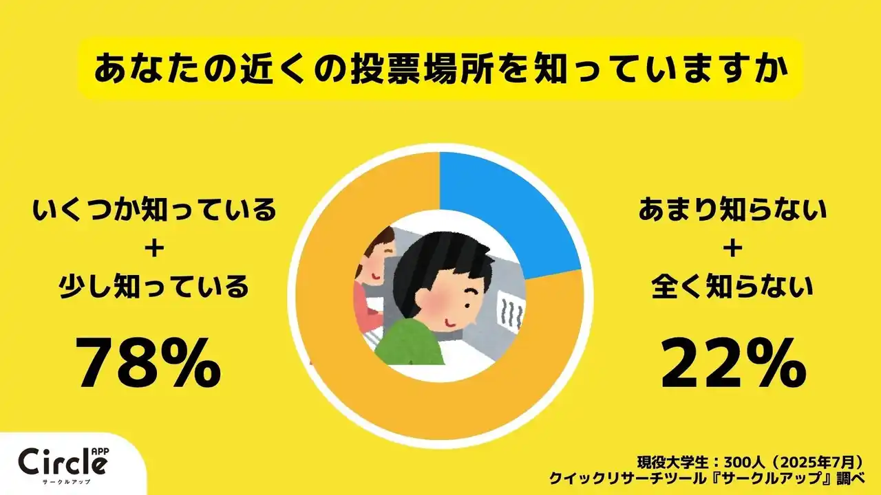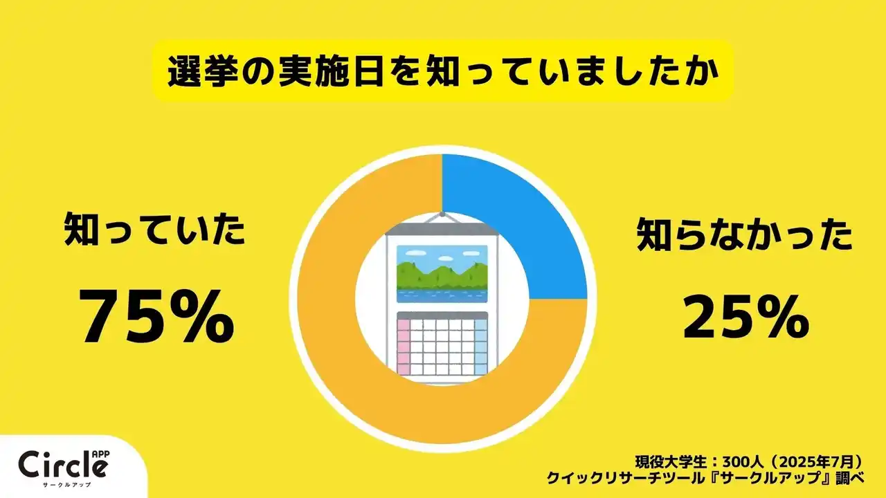 2025年7月20日に実施される参議院選挙について、大学生を対象に「存在」「日程」「投票場所」の認知度を調査しました。 |