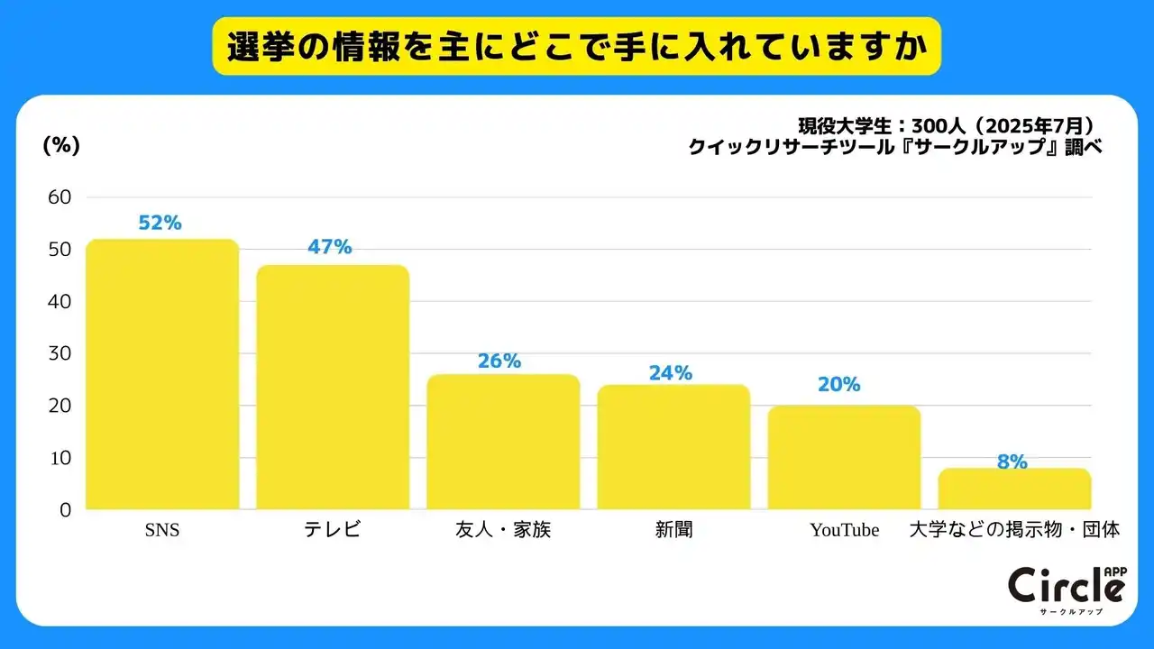 株式会社RECCOO(本社:東京都渋谷区、代表取締役:出谷 昌裕、以下、当社)が運営するZ世代に特化したクイックリサーチサービス『サークルアップ』は、最新のZ世代調査として「Z世代の参院選」に関する調査レポートを発表します。今回の調査では大学生の、参院選の投票意欲や情報収集媒体などについて調査しました。なお、サークルアップを活用してZ世代の調査を行いたい場合、または調査結果を自社メディアの記事などに転載される場合は、こちらにお問い合わせください。 |