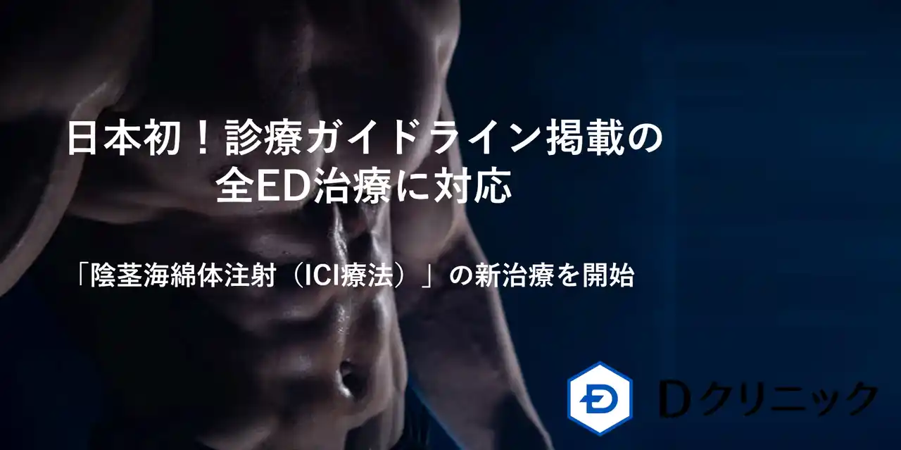 【Dクリニック メンズ】 日本初!診療ガイドライン掲載の全ED治療に対応 Dクリニックにて「陰茎海綿体注射(ICI療法)」の新治療を開始 PDE5阻害薬から外科手術まで全ての選択肢を提供できる唯一の医療機関へ