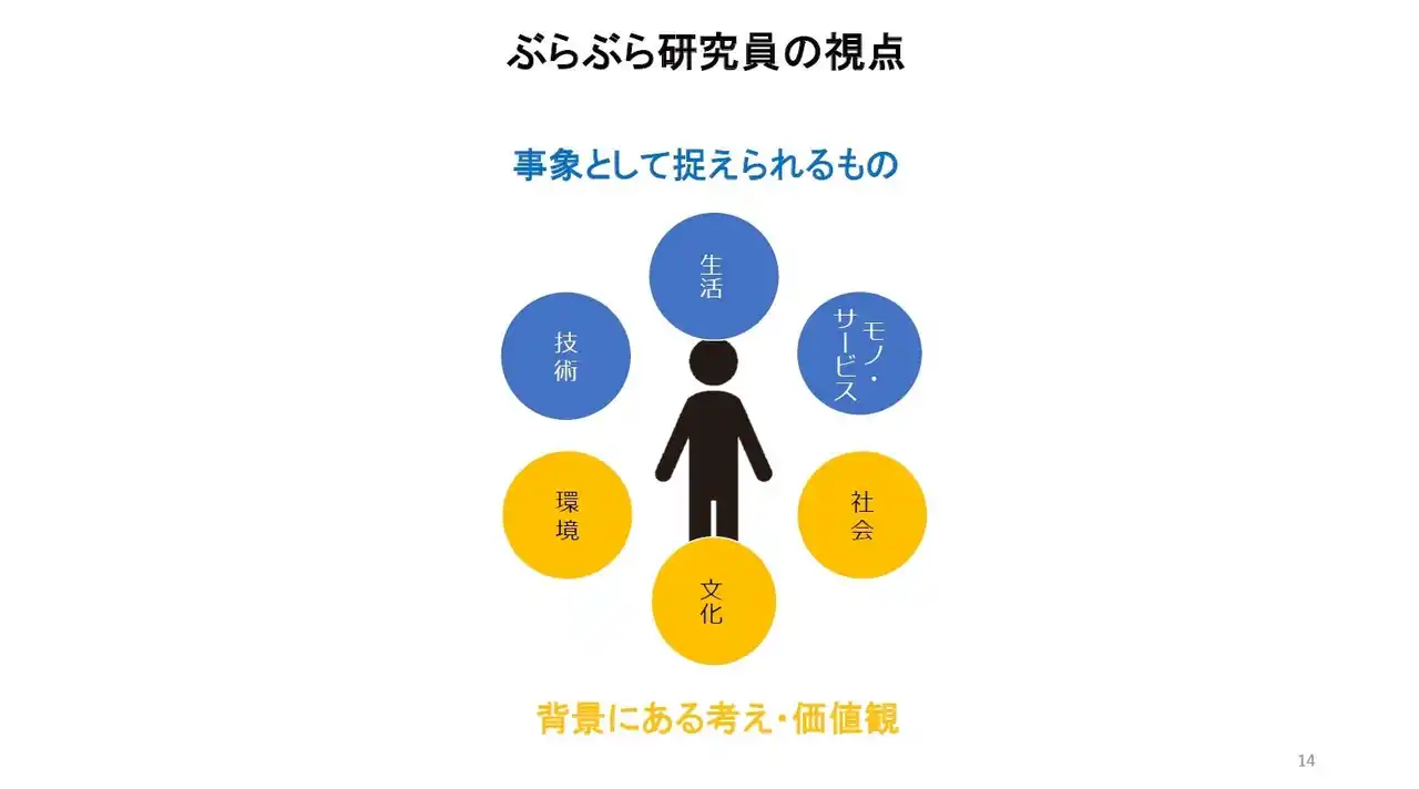 MIRCに所属する「ぶらぶら研究員」が国内外を問わず実際に足を運びながら蒐集している「美」に関する幅広い情報を紹介し、後半ではぶらぶら研究員の疑似体験として、参加者一人ひとりが自身の価値観に基づいて「美」について考え、共有するグループワークを実施しました。 |